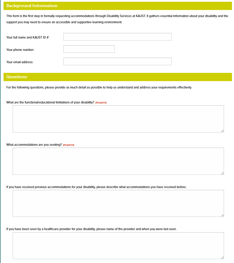 - KAUST Disability Medical Documentation Form (for most medical or psychological conditions)